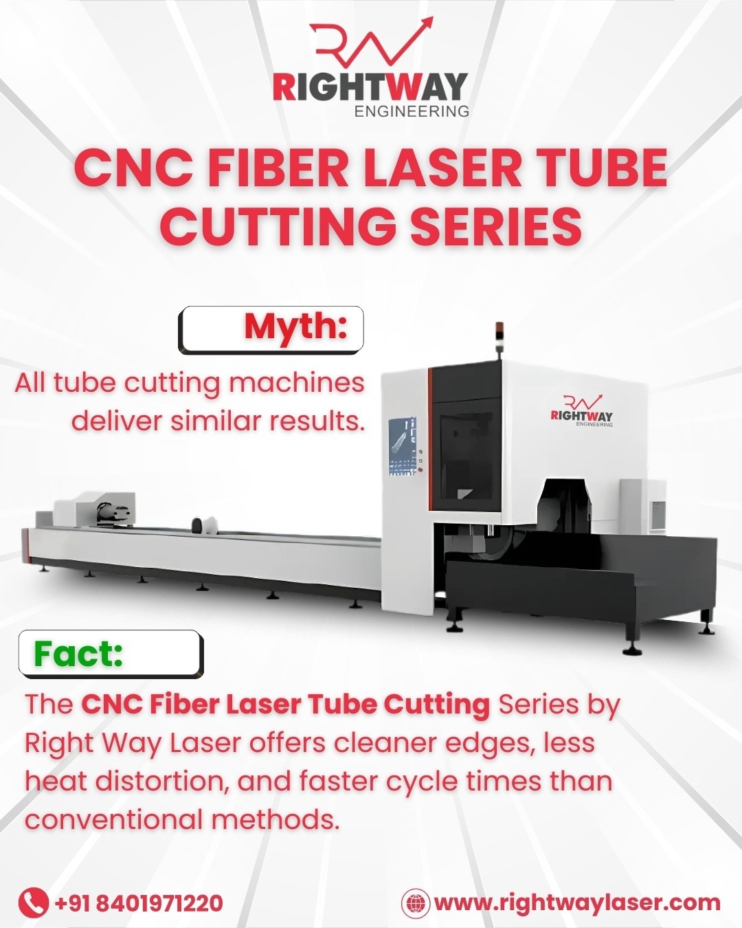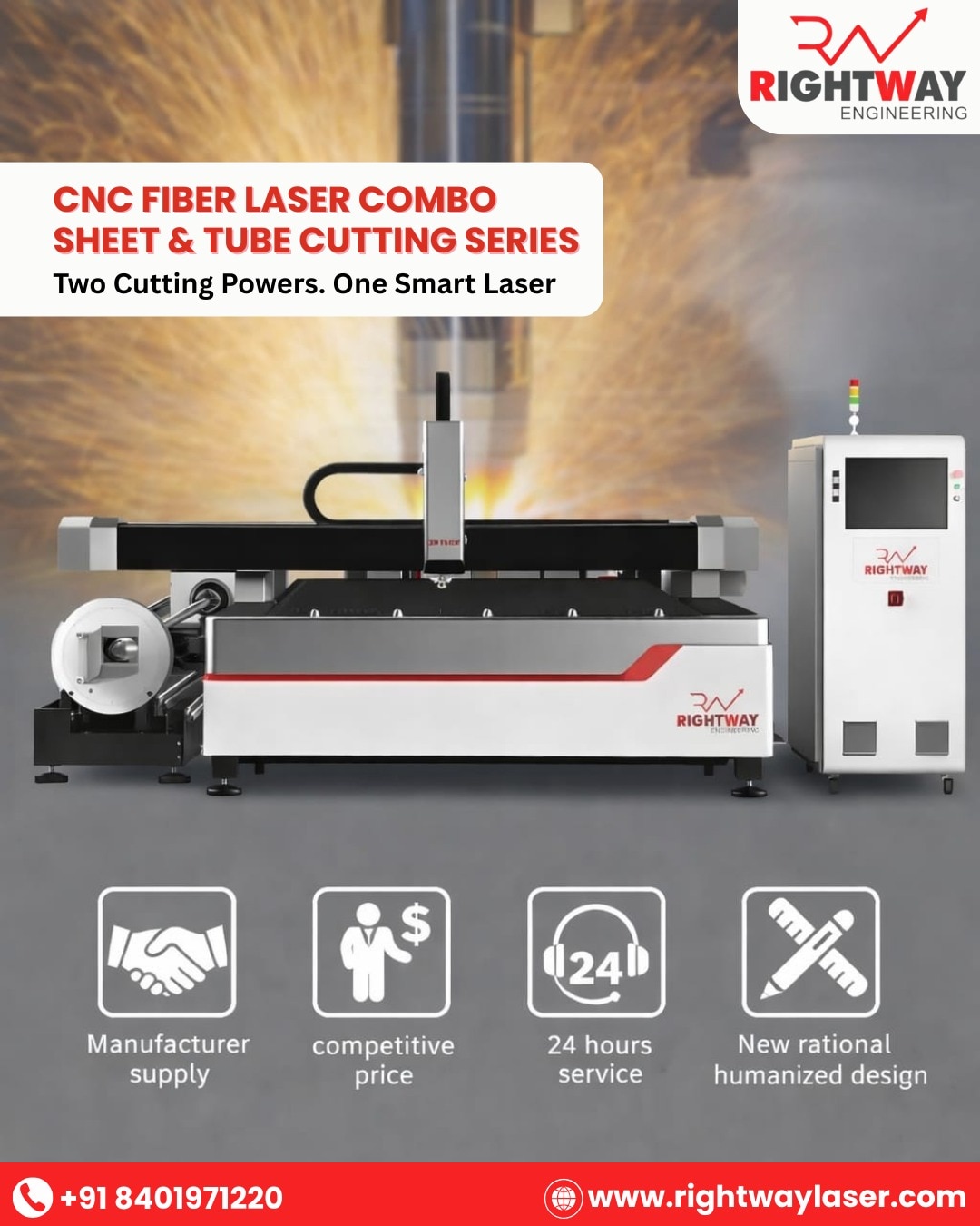 Fiber Laser Sheet Cutting Series Manufacturers in India. Precision cutting is no longer a luxury—it’s a necessity. The CNC Fiber Laser Sheet Cutting Series from Rightway Engineering delivers the speed, accuracy, and reliability today's manufacturers demand. Whether you're shaping micro-components or cutting heavy sheet metal, this series is engineered to empower your productivity. Built for Industry Professionals This machine is built for industry professionals who can’t compromise on output, speed, or finish. Whether you’re running a small job shop or a full-scale production unit, this cutting solution adapts to your workflow seamlessly. With laser power ranging from 1.5 kW to 12 kW, you get the freedom to tackle both thin sheets and thick metals with confidence. Technical Specifications: The CNC Fiber Laser Sheet Cutting Series combines powerful laser technology with smart automation to deliver uncompromising results. Working Area: 3050×1550 mm to 6300×2550 mm Laser Power: 1.5 kW to 12kW Accuracy: ±0.05 mm Repeat Accuracy: ±0.03 mm Max Speed: 120 m/min Acceleration: 1.2G With such high-end specifications, users benefit from faster job turnaround, precise part quality, and consistent repeatability—even in high-volume production environments. Industrial Applications Across Sectors Thanks to its flexible power range and generous bed size, the CNC Fiber Laser Sheet Cutting Series fits effortlessly into a wide variety of industrial applications: • Semiconductor Industry—precision part profiling • 3C Electronics Industry—high-detail component cutting • Doors and Windows Manufacturing—frame and panel profiling • Hardware Fabrication—intricate sheet parts • New Energy Industry—energy cell and enclosure manufacturing • Ship and Boat Building—structural and decorative components • Aerospace Industry—lightweight precision parts • Advertising Industry—signage and metal display boards • Home Appliances—covers, panels, and chassis cutting • Automotive Industry—custom parts, bodywork, exhaust systems From micro to macro, this machine handles it all with grace and consistency. Your Partner in Sheet Metal Cutting Innovation At Rightway Engineering, we go beyond just delivering machines—we deliver precision, reliability, and growth. The CNC Fiber Laser Sheet Cutting Series is a result of years of industry experience, technological insight, and customer collaboration. It’s not just a tool; it’s your long-term production partner. If your goal is to push production boundaries while maintaining the highest standards in cut quality and accuracy, Rightway Engineering’s CNC Fiber Laser Sheet Cutting Series is the ideal choice. With wide industrial adaptability, high-speed automation, and powerful laser capability, it's built for professionals who shape industries.
