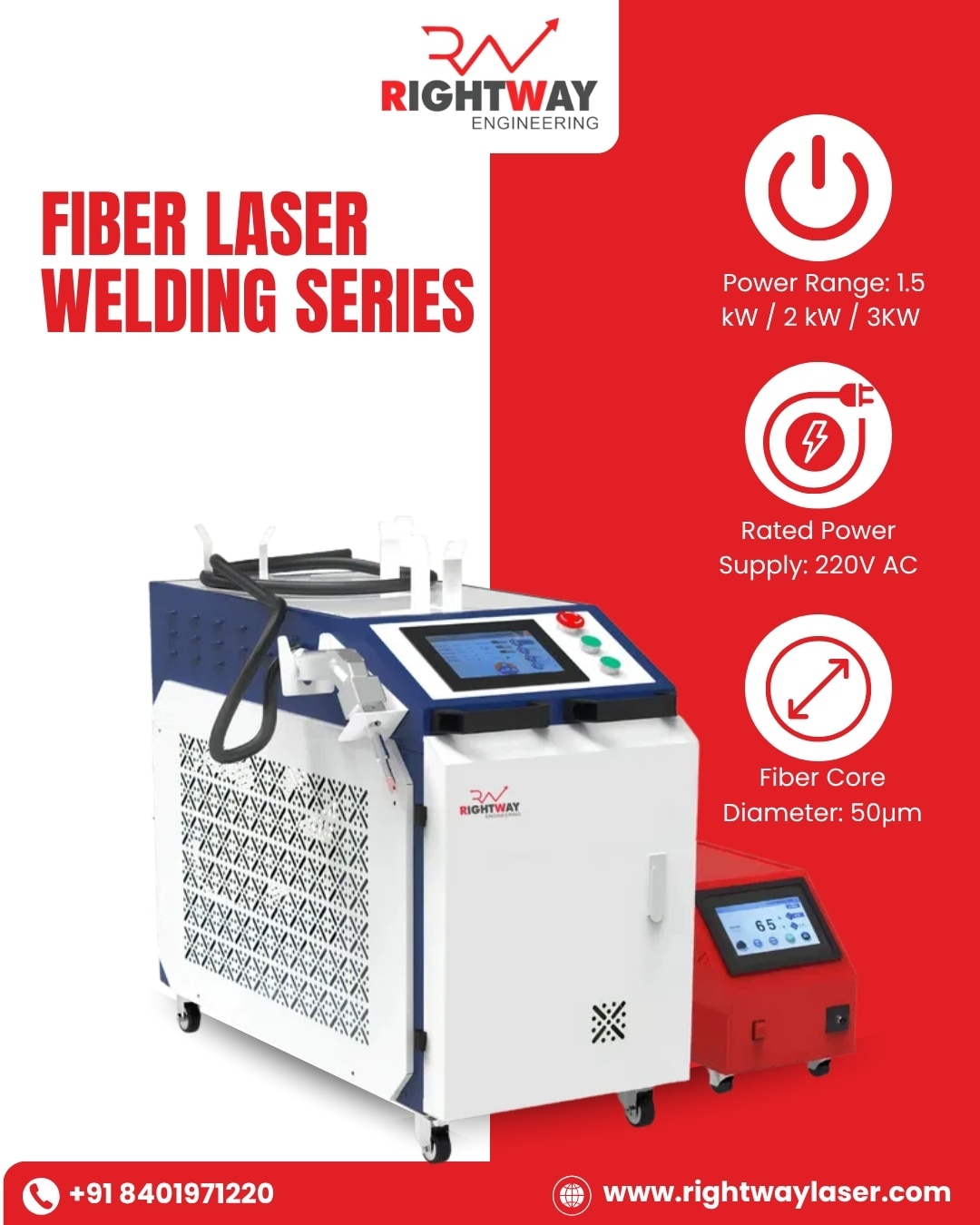 Fiber Laser Welding System Manufacturers in India. In today’s competitive industrial environment, precision, speed, and consistency are critical for achieving superior production results. As one of the leading Fiber Laser Welding System Manufacturers in India, Rightway Engineering offers advanced welding solutions engineered for high efficiency and unmatched performance. Our Fiber Laser Welding Systems are compact, powerful, and highly efficient—designed to deliver clean, strong, and precise welds with minimal heat distortion. Whether you are working with stainless steel, carbon steel, aluminum, or brass, these systems ensure excellent finish quality while reducing the need for post-processing. Built for Industrial Excellence Rightway Engineering’s Fiber Laser Welding Systems are developed for professionals who demand accuracy and productivity in every operation. With power options ranging from 1.5 kW to 3 kW, these systems are suitable for both light fabrication and heavy-duty industrial applications. The 10-meter fiber cable length provides flexibility and ease of movement across workstations, making it ideal for dynamic environments such as automotive plants, fabrication units, and electronics manufacturing facilities. Advanced Technical Specifications Our Fiber Laser Welding Systems are equipped with modern features to ensure stable and long-lasting performance: * Power Range: 1.5 kW / 2 kW / 3 kW * Laser Type: Fiber Laser * Modulation Frequency: 1 – 20 Hz * Fiber Cable Length: 10 meters * Fiber Core Diameter: 50 μm * Power Supply: 220V AC * Cooling System: Water Cooling The advanced water cooling mechanism ensures continuous operation without overheating, improving machine durability and operational efficiency. Wide Industrial Applications Due to their versatility and precision, Fiber Laser Welding Systems are widely used in multiple sectors: * Automotive Component Manufacturing * Sheet Metal Fabrication * Electrical Panel Production * Kitchen Equipment Manufacturing * Aerospace Components * Battery and EV Component Welding With high-precision laser technology, these systems create narrow and clean weld seams, often eliminating secondary finishing processes—saving time, reducing labor costs, and boosting productivity. Why Choose Rightway Engineering? Rightway Engineering is a trusted name in industrial machinery, known for delivering innovative and high-performance solutions. Our Fiber Laser Welding Systems are designed with durability, safety, and long-term reliability in mind. Each machine is thoroughly tested to ensure consistent performance from day one. Backed by strong technical support and after-sales service, we help your business maintain uninterrupted operations and achieve maximum output. Enhance your welding precision and productivity—Contact Rightway Engineering today!