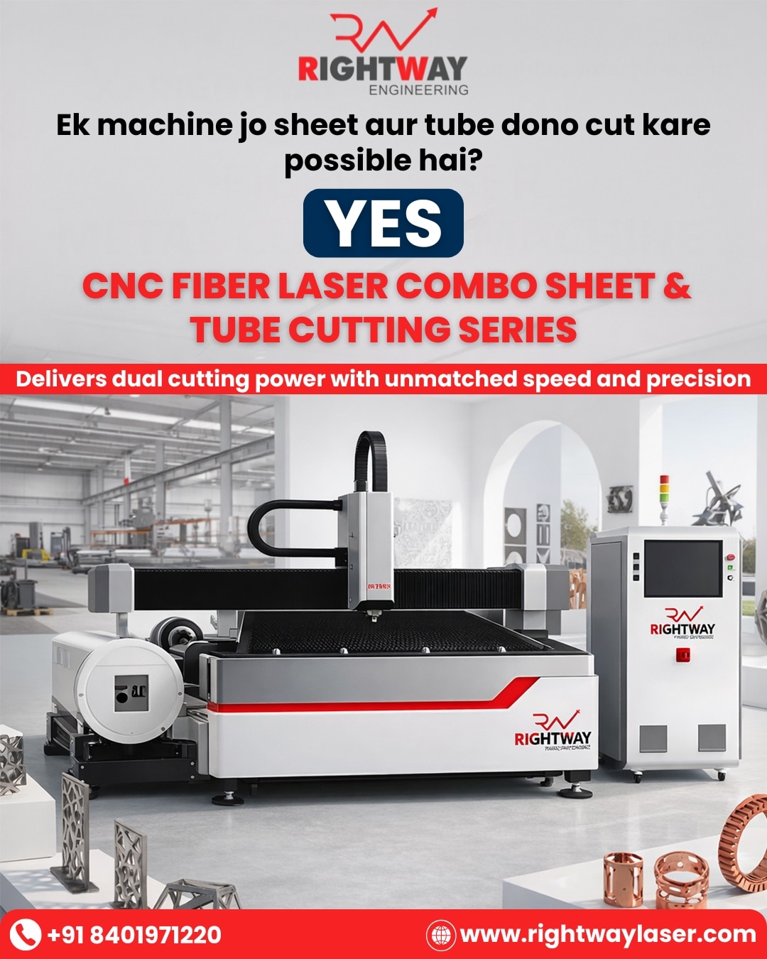Fiber Laser Sheet Cutting Series Manufacturers in India. Precision cutting is no longer a luxury—it’s a necessity. The CNC Fiber Laser Sheet Cutting Series from Rightway Engineering delivers the speed, accuracy, and reliability today's manufacturers demand. Whether you're shaping micro-components or cutting heavy sheet metal, this series is engineered to empower your productivity. Built for Industry Professionals This machine is built for industry professionals who can’t compromise on output, speed, or finish. Whether you’re running a small job shop or a full-scale production unit, this cutting solution adapts to your workflow seamlessly. With laser power ranging from 1.5 kW to 12 kW, you get the freedom to tackle both thin sheets and thick metals with confidence. Technical Specifications: The CNC Fiber Laser Sheet Cutting Series combines powerful laser technology with smart automation to deliver uncompromising results. Working Area: 3050×1550 mm to 6300×2550 mm Laser Power: 1.5 kW to 12kW Accuracy: ±0.05 mm Repeat Accuracy: ±0.03 mm Max Speed: 120 m/min Acceleration: 1.2G With such high-end specifications, users benefit from faster job turnaround, precise part quality, and consistent repeatability—even in high-volume production environments. Industrial Applications Across Sectors Thanks to its flexible power range and generous bed size, the CNC Fiber Laser Sheet Cutting Series fits effortlessly into a wide variety of industrial applications: • Semiconductor Industry—precision part profiling • 3C Electronics Industry—high-detail component cutting • Doors and Windows Manufacturing—frame and panel profiling • Hardware Fabrication—intricate sheet parts • New Energy Industry—energy cell and enclosure manufacturing • Ship and Boat Building—structural and decorative components • Aerospace Industry—lightweight precision parts • Advertising Industry—signage and metal display boards • Home Appliances—covers, panels, and chassis cutting • Automotive Industry—custom parts, bodywork, exhaust systems From micro to macro, this machine handles it all with grace and consistency. Your Partner in Sheet Metal Cutting Innovation At Rightway Engineering, we go beyond just delivering machines—we deliver precision, reliability, and growth. The CNC Fiber Laser Sheet Cutting Series is a result of years of industry experience, technological insight, and customer collaboration. It’s not just a tool; it’s your long-term production partner. If your goal is to push production boundaries while maintaining the highest standards in cut quality and accuracy, Rightway Engineering’s CNC Fiber Laser Sheet Cutting Series is the ideal choice. With wide industrial adaptability, high-speed automation, and powerful laser capability, it's built for professionals who shape industries.